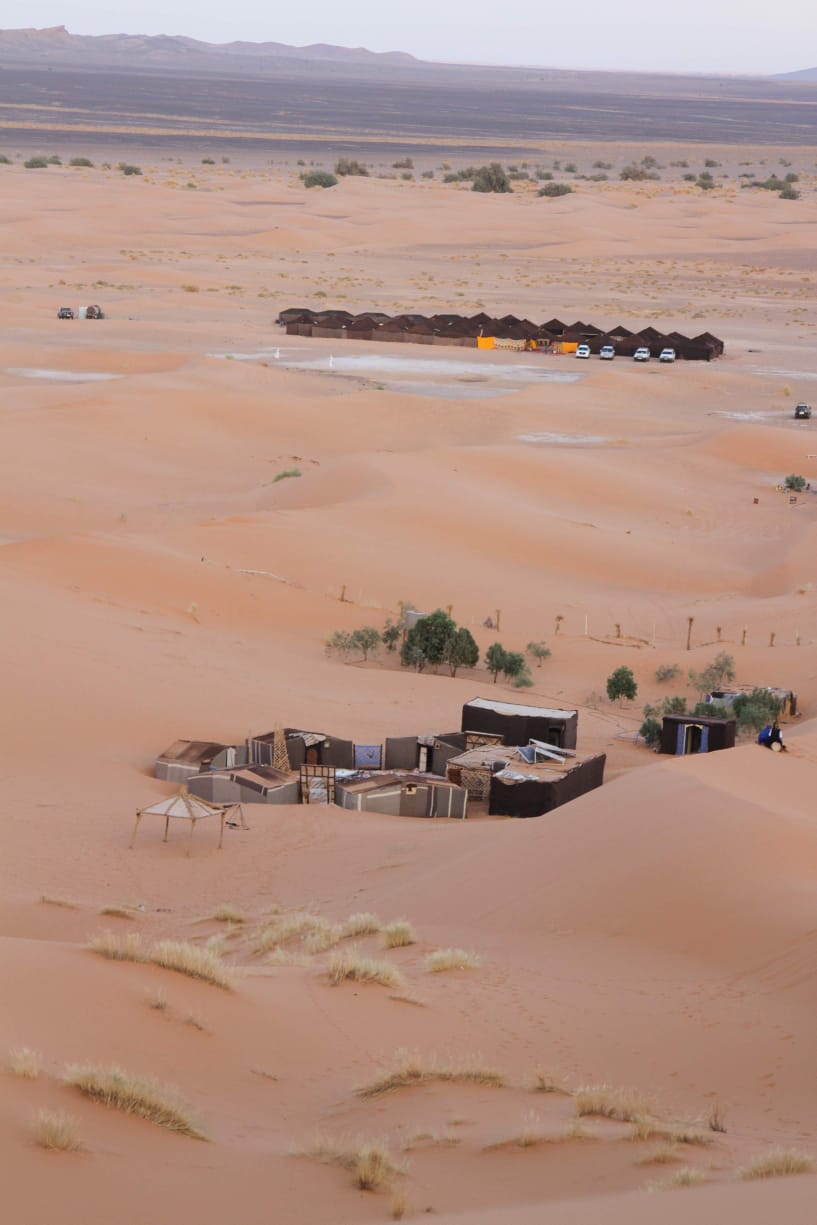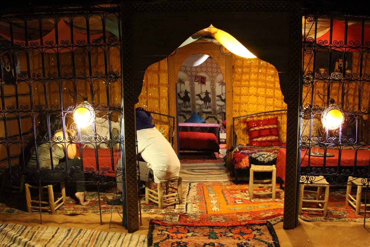 Stay in comfortable luxury tents and enjoy traditional Moroccan cuisine served by Café–Restaurant Chez Zakaria.